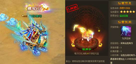 “霓霞玲珑驹”:技能为“九天玄刹”,仙宠出战时有效,最高等级增加主人12%攻击伤害;