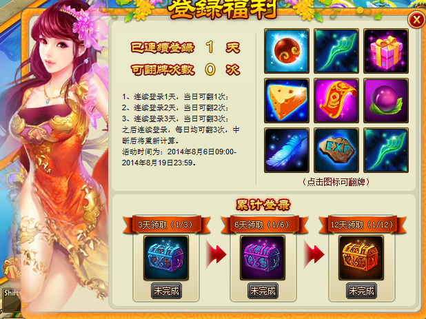 之后连续登录,每日均可翻牌3天,中断后将重新计算。