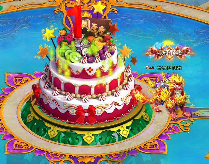 【活动内容】庆祝游戏上线一周年,我们一起制作周年庆大蛋糕!活动期间全服玩家每天可以收集蛋糕材料(面粉、水果、奶酪),然后提交材料制作蛋糕,做成蛋糕后可以获得丰厚奖励!