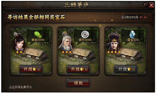 1) 每次寻访后会出现3个不同星级的人物,花费金币可升级星级,点击“领取”后将收获奖励。