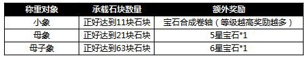 活动内容:活动期间,玩家通过给小象、母象或母子象称重来获得宝石或宝石合成卷轴奖励,且增加石块达到指定数量还可获得曹操赐予的额外奖励。