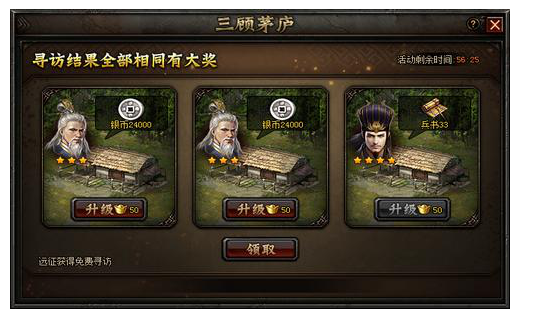 1) 当3个人物星级相同时,系统会自动收获奖励,且可额外获得兵书奖励;
