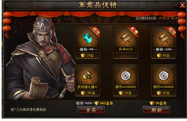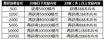 累计充值满50000金币,再送3000金币与军工旗(十小时军功翻倍)