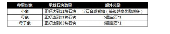 活动内容:活动期间,玩家通过给小象、母象或母子象称重来获得宝石或宝石合成卷轴奖励,且增加石块达到指定数量还可获得曹操赐予的额外奖励。
