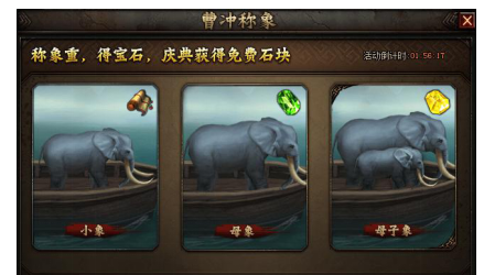 曹冲称象喜获丰厚大奖,活动期间,大家通过给大象称重可获得宝石或宝石卷轴奖励,同时称重最精确的玩家还可获得更多额外奖励!