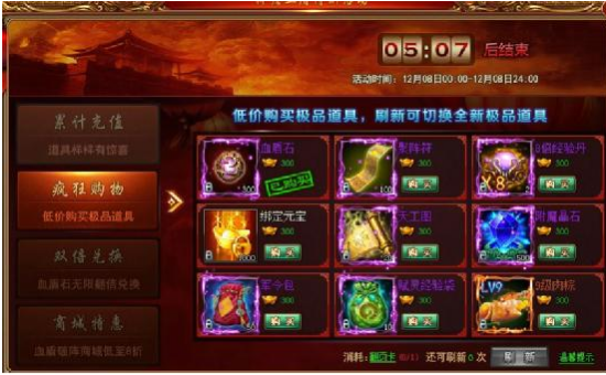 活动期间,玩家可以在“优惠面板”中使用低价购买所有道具,每种道具仅可购买一次,在活动面板中,可通过刷新进行重新购买道具