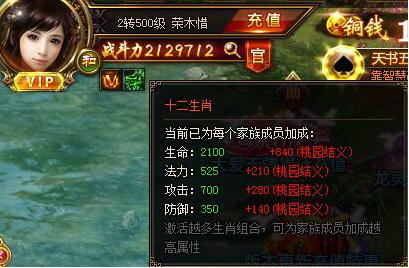 桃园结义最高提升家族所有人12生肖60%的属性!一人提升兄弟分享!