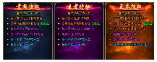 每日挖宝增加20次 | BOSS之家4层 | VIP专属称号 |