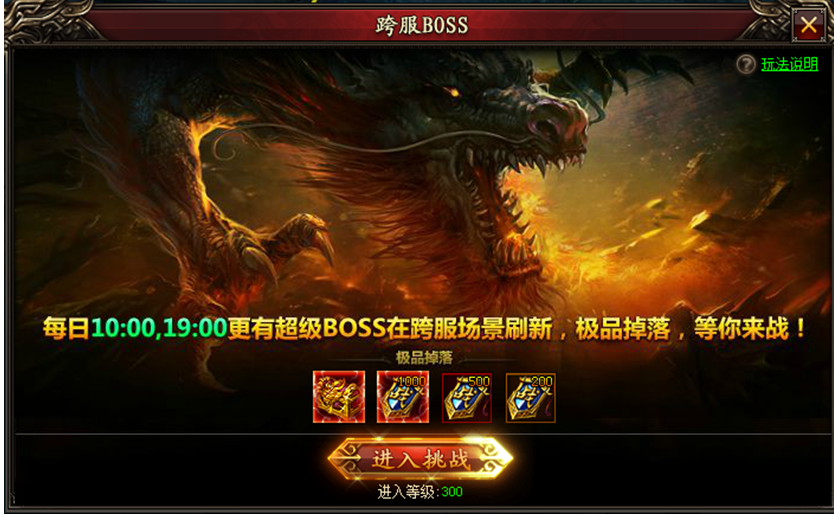 进入方式:点击【跨服世界】--【跨服BOSS】--【进入挑战】