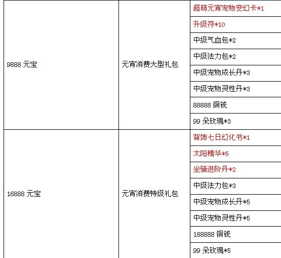 【活动内容】:活动期间,在商城购买、神秘商店、秘境累积、技能书刷新等消费非绑定元宝达到相应的数量即可获得相应的礼包!