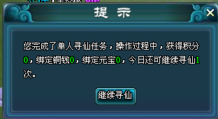 (在限定的10分钟内,将任务提交到锁龙岭NPC散仙处,即可完成任务,获得经验和铜币奖励。寻仙过程中根据任务提示,按顺序敲击键盘方向键,完成即可额外获得绑定铜钱以及绑定元宝)