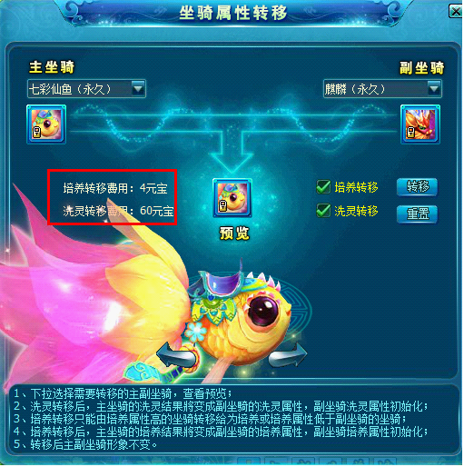 5、 应广大玩家要求,优化了坐骑属性转移,让玩家更清楚扣费规则。