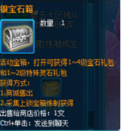 获得上锁宝石宝箱后可在下面购买开启钥匙,然后在炼制中将上锁宝箱和钥匙炼制成宝石宝箱,使用后可获得1~3级特殊灵石和最高5级属性宝石奖励。