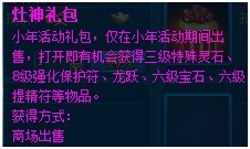 活动期间,商城热卖新增灶神礼包,售价20元宝,可以开出极品道具哦!