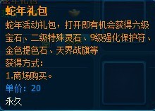 商城购买蛇年礼包,开出将获得珍贵道具哦!