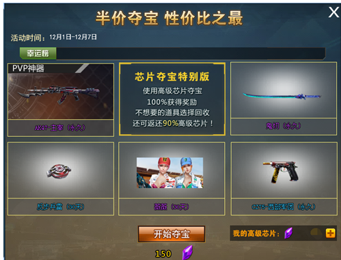 本周精挑细选最受玩家欢迎的道具五折夺宝,使用液态水晶夺宝,折合TZ点只需商城半价!夺到什么都是稳赚不赔!