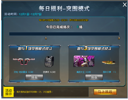 活动期间每日完成突围模式即可领取丰厚好礼!