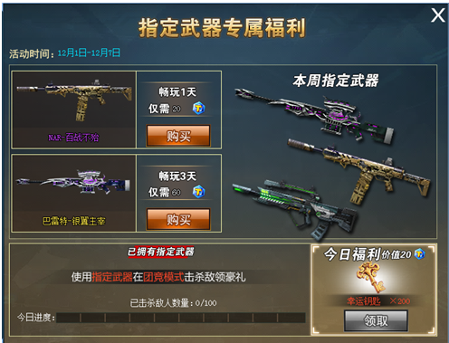 使用指定武器杀敌达到指定人数即可领取丰厚代币奖励!