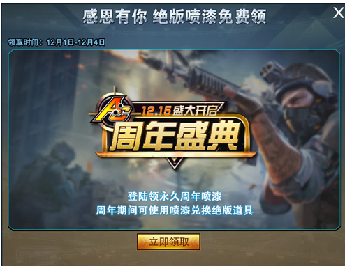 活动期间登录即可领取永久喷漆,周年预热只等你来嗨!
