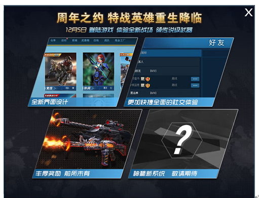 特战英雄为了迎接3周年彻底换新装噢~12月5日当天登录共同见证特战重换新生!更有传说级武器领取,仅限1天,错过不再有。