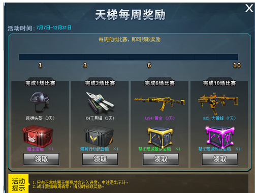 活动期间每周完成天梯模式战斗即可领取史诗级武器!