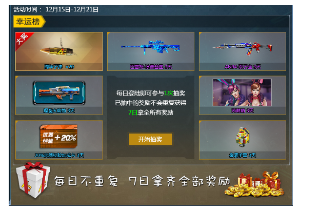活动期间登录即可抽取豪华奖励,已抽中的奖励不会重复获得,七日拿全所有奖励!