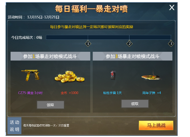 活动期间参与暴走对喷达到指定场次即可免费领取丰厚奖励!