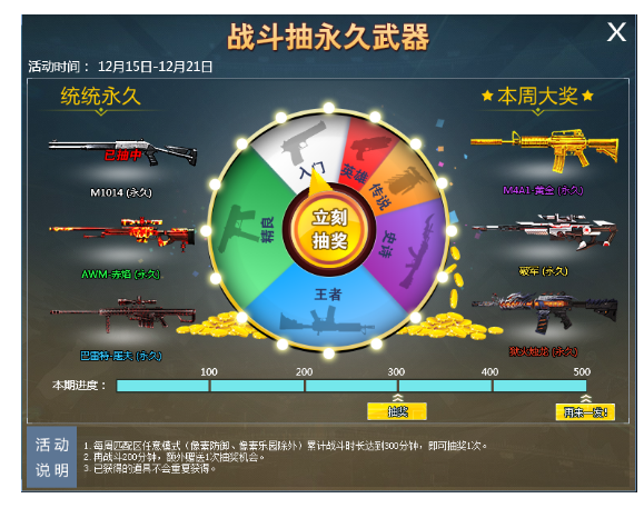 活动期间,英雄、传说、史诗武器全部免费许愿。使用周年子弹射击,和所有玩家一起免费抢英雄武器!