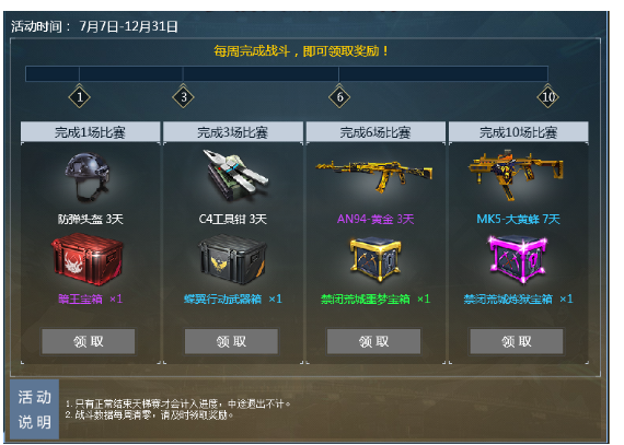 活动期间每周完成天梯模式战斗即可领取史诗级武器!