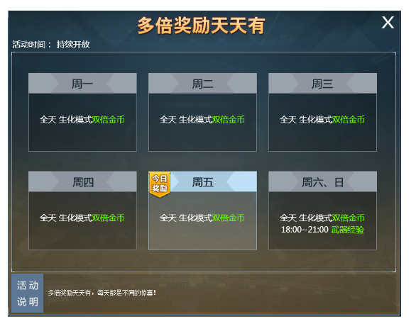活动期间生化模式双倍金币!