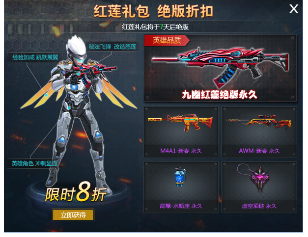 红莲礼包将于2月10日更新后下架,最后一周,全场8折!各位玩家不要错过了哦!