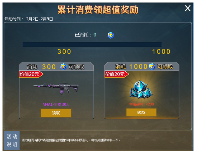 活动期间消耗达到指定条件,即可领取丰厚豪礼!