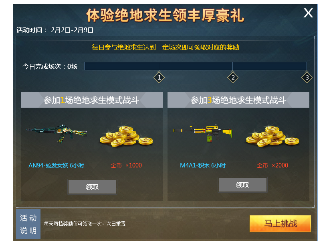 活动期间体验决赛圈模式,即可领取丰厚奖励!