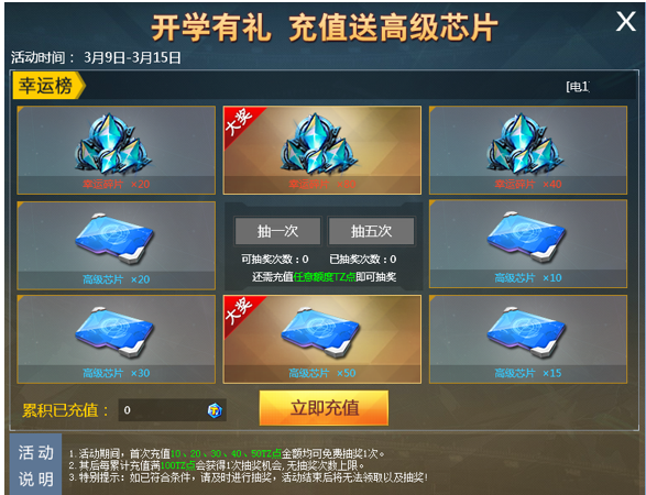 1.开学有礼 充值送高级芯片