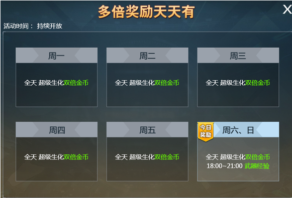 活动期间超级生化模式双倍金币!