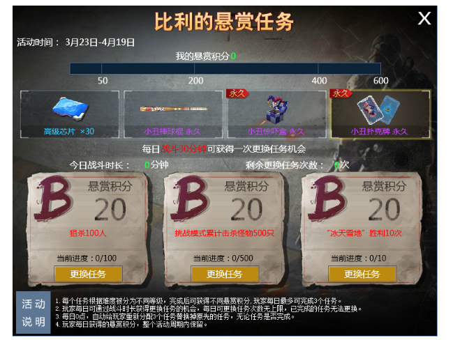 最新小丑系列武器通过任务即可免费获得!悬赏任务难度自定,更有高级芯片可免费领取!
