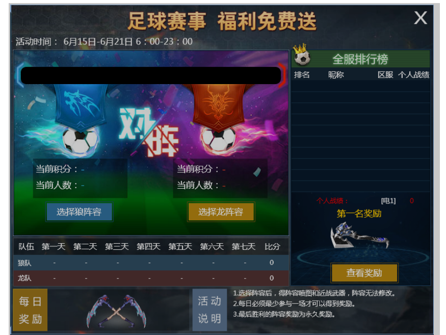 2.每日参与一场暴走足球玩法才可以得到每日奖励。
