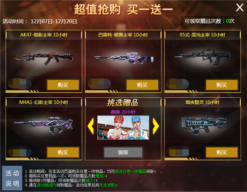2.每购买任意物品一次,可领取的赠品次数+1;
