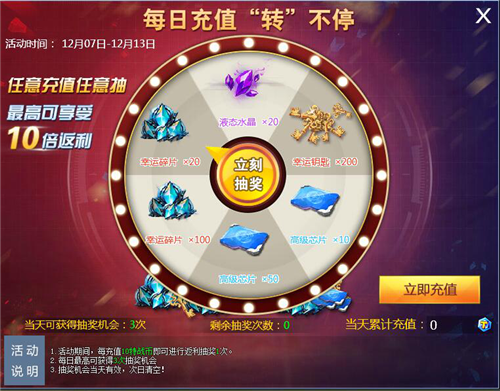 3.抽奖机会仅限充值当天有效,次日清空!