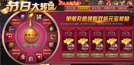 3、 活动-单笔双倍,活动期间玩家充值对应额度即可再领取等额的元宝奖励,次数有限,先充先得(开服时间大于=4天的服务器开放)