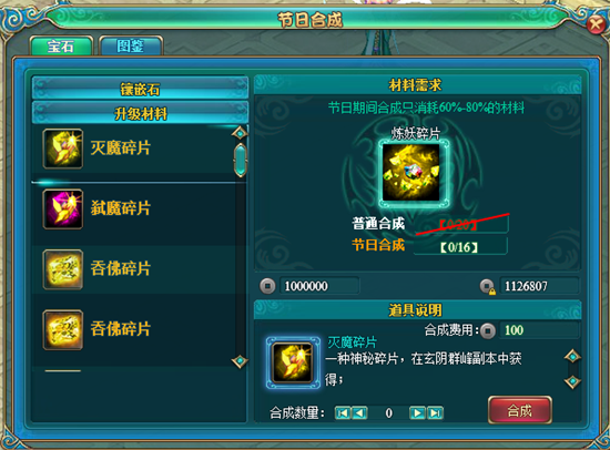 活动内容:中秋节大放送,全能宝石、装备材料、图鉴道具,活动期间,合成材料的数量是原有的60%—80%。把握时机,活动时进行合成将大大节省材料哦!