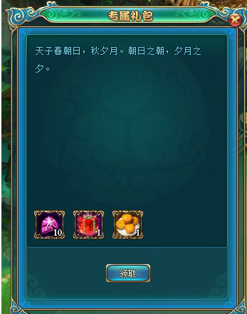 活动奖励:紫色羽翼碎片x10、中秋大礼包x1、月饼x1
