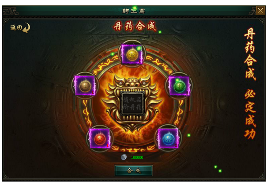 3、炼制的基础丹:金丹、木丹、水丹、火丹、土丹。