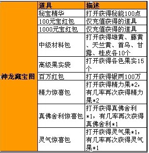 【活动内容】:活动期间,每日击败第五层神龙教主100%掉落神龙藏宝图*1