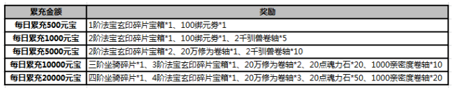 活动规则:活动期间每日累计充值达到目标金额即可领取奖励,只限充值当天领取
