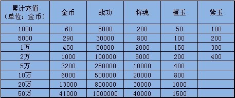 活动内容:活动时间内,累计充值达到指定额度即可领取相应的充值豪华礼包奖励!