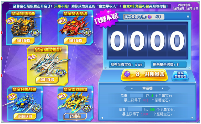 每天5次机会,投入至尊宝石,必定收获更多!稳赚不赔!