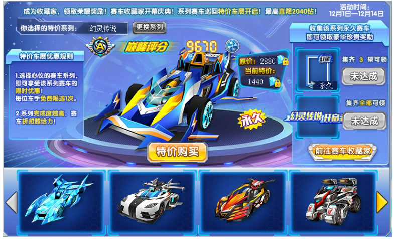 系列完成度越高,赛车折扣越给力,最高直降2040钻!