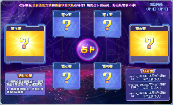 每周登陆先占卜,测出本周好运势;然后豪华礼物拿不停哦!