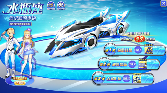 参与水瓶座三关挑战,即可获得永久水瓶座赛车!